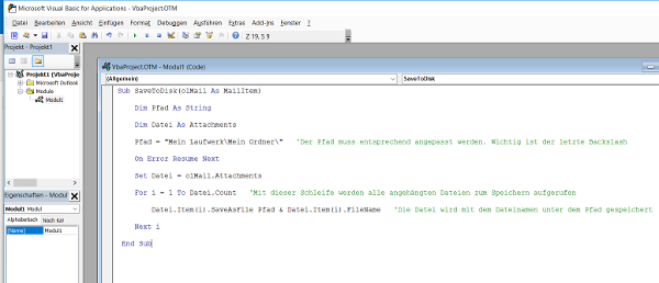 Mit einer Regel in Outlook ein VBA-Skript aufrufen welches die angehängten Dateien speichert.